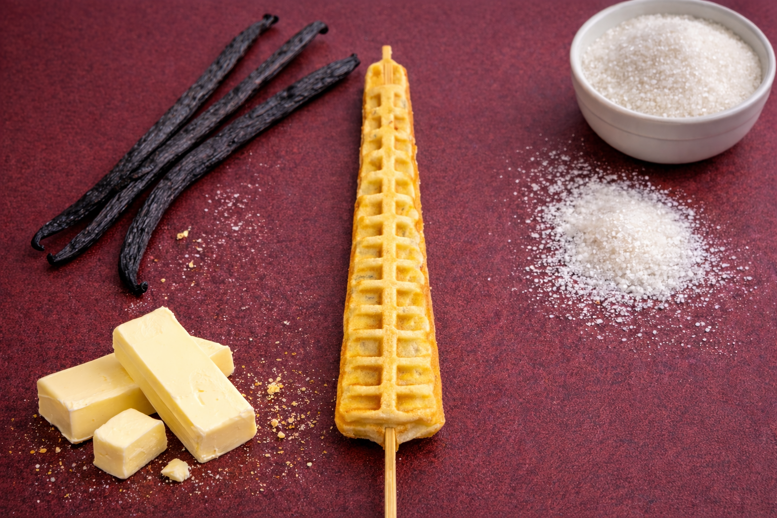 een warme Luikse wafel op een stokje, perfect om te dippen, toppen en genieten. Cute, classy en crunchy tegelijk.