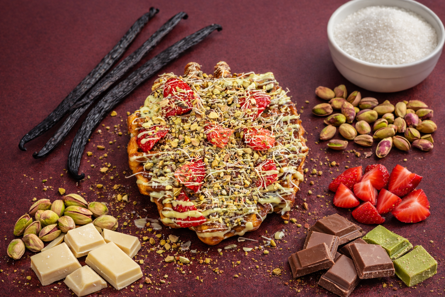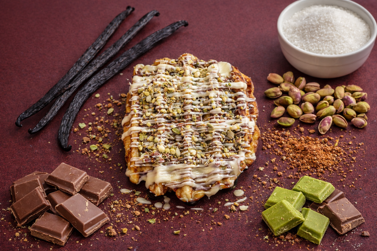 Onze Dubai Wafel is een smaakfeest met melkchocolade,