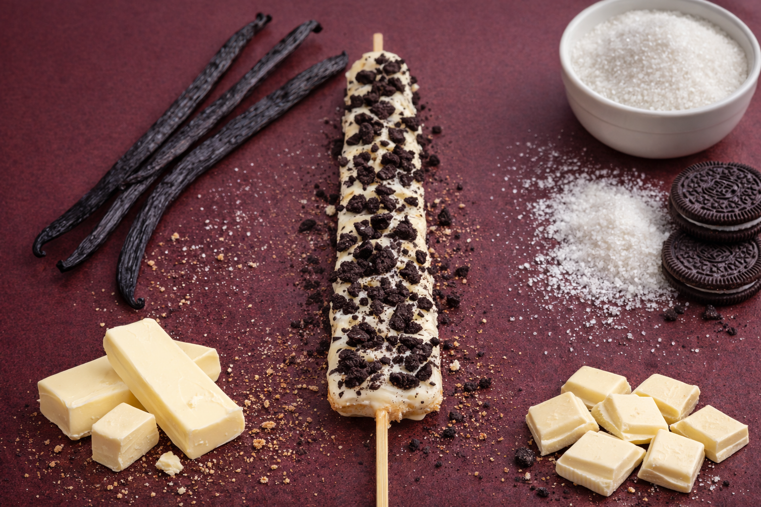 Knapperige Oreo, volledig omhuld met romige witte chocolade. Perfect als zoete snack.