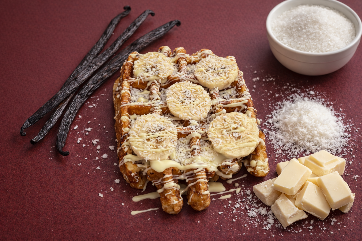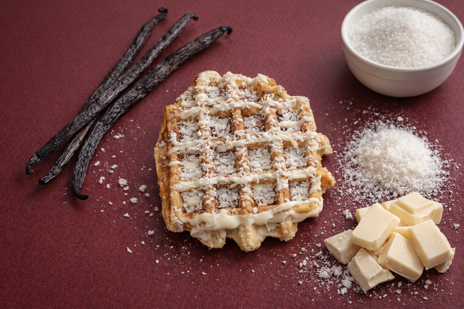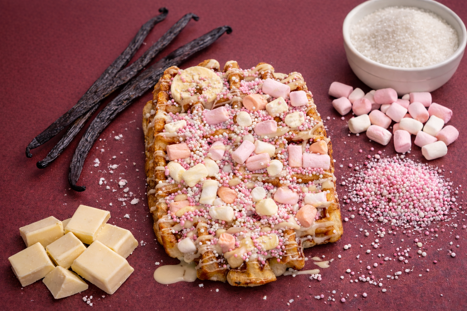 Onze Party Wafel is een Luikse wafel die compleet losgaat met witte chocolade, marshmallow